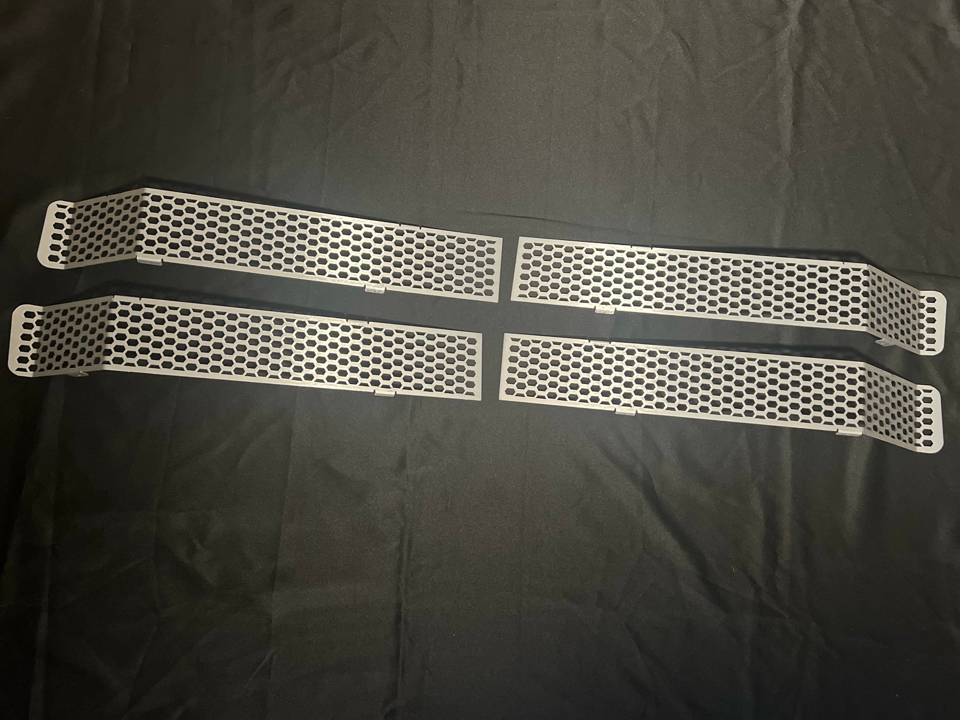 The GP custom grill is precisely CNC laser cut out of 15-gauge aluminum & available in two different finishes. Raw aluminum or powder coated satin black. The kit includes 4 grill inserts and mounting hardware. (Old grill is required to be CUTOUT) see video for installation.